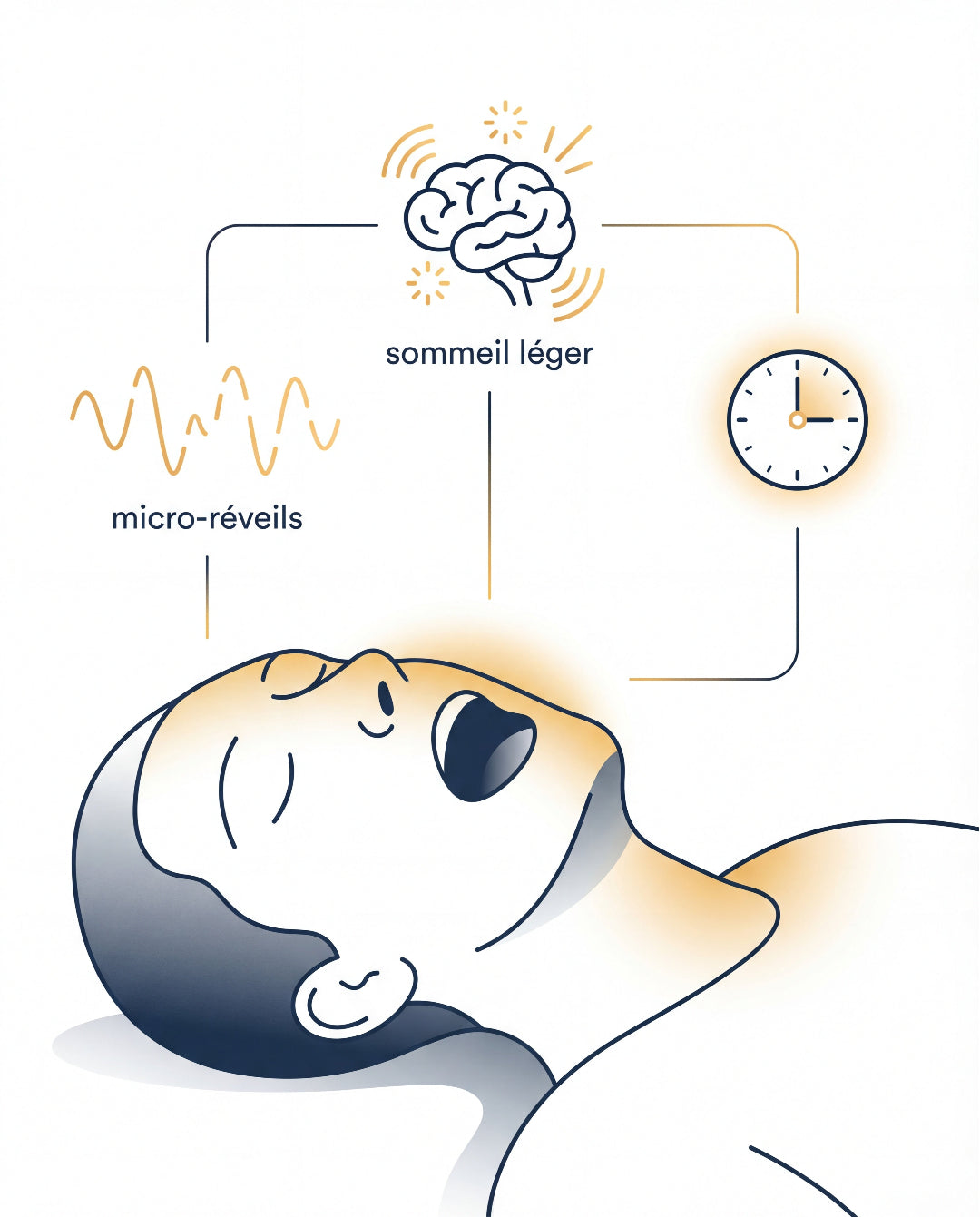 Respirer par le nez active le système nerveux qui dit à votre corps : « tu peux te reposer pour vrai. » L'air est filtré, réchauffé, et votre sommeil atteint les phases profondes.