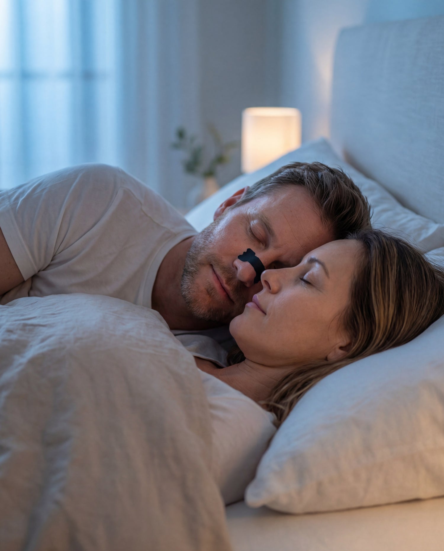 Noctavia ouvre mécaniquement tes voies nasales en 10 secondes. Pas de machine, pas de médicament — juste une respiration fluide toute la nuit.